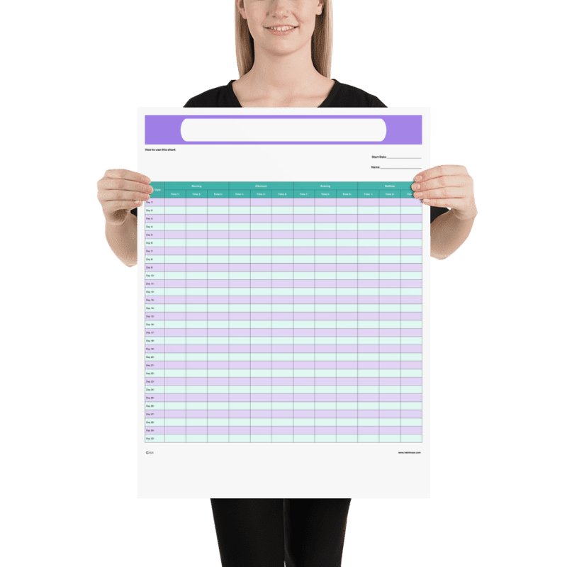 Our 18 ร 24 inch posters are designed to make an impact. This larger format is ideal for bedrooms, offices, gyms, or classrooms โ anywhere you want your challenge to stand out. The size allows plenty of room for grids and tasks. Each poster is printed clearly and cleanly, making it easy to follow.